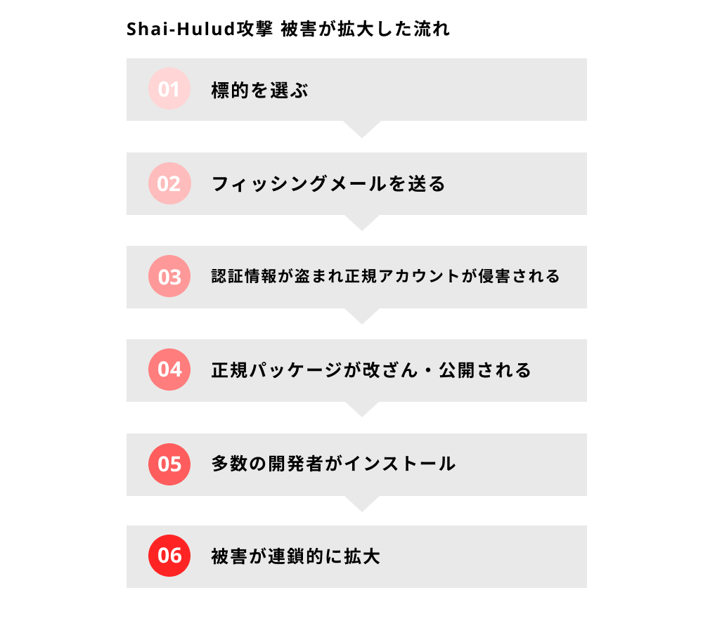 Shai-Hulud攻撃は巧妙に偽装されたフィッシングメールを起点として発生したサイバー攻撃です。高度な技術的攻撃から始まったものではなく、あくまでも「人」の判断を狙った攻撃でした。
